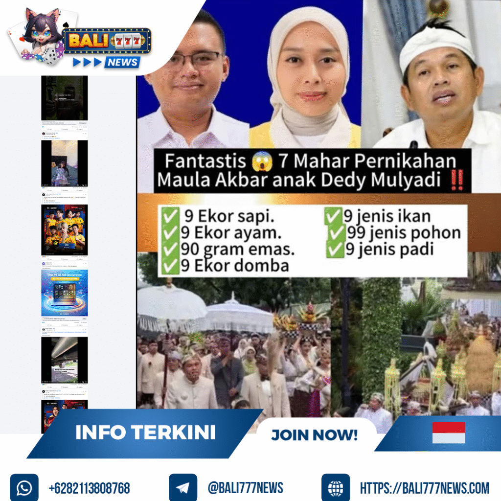 Pernikahan Maula Akbar, putra Deddy Mulyadi, menjadi sorotan karena mahar fantastis yang mencakup 9 ekor sapi, 99 jenis pohon, dan berbagai barang lainnya. Acara ini juga menjadi bukti bahwa tradisi dan budaya lokal masih dipertahankan dalam momen-momen spesial seperti pernikahan. Meski kontroversi atau pertanyaan muncul, pernikahan ini tetap menjadi momen istimewa bagi keluarga dan kerabat terdekat.